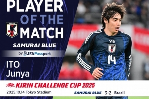 体育资讯10月16日讯 日本国家队官推消息,伊东纯也当选日本队3-2逆转巴西队的全场最佳球员。